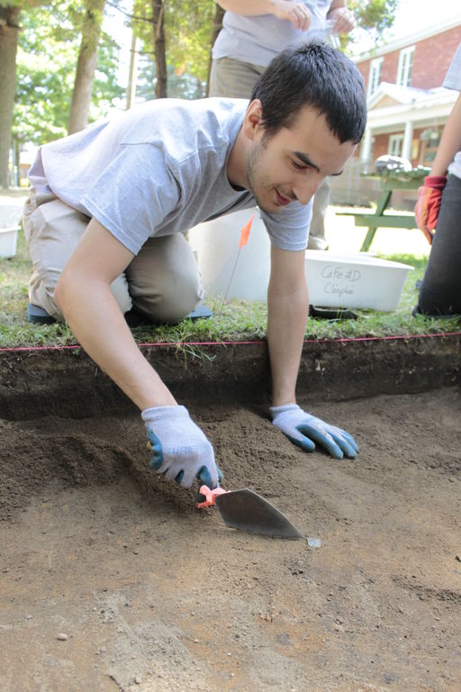 G.T.: Yes. Well, what actually happened is that in 2011 we started digging test pits, or small 50-cm squares just about everywhere here in Odanak in an effort to find archaeological remains that could be associated with the occupation of the fort. And then in 2012, after some of the test pits proved to be positive, we began to do an archaeological dig.