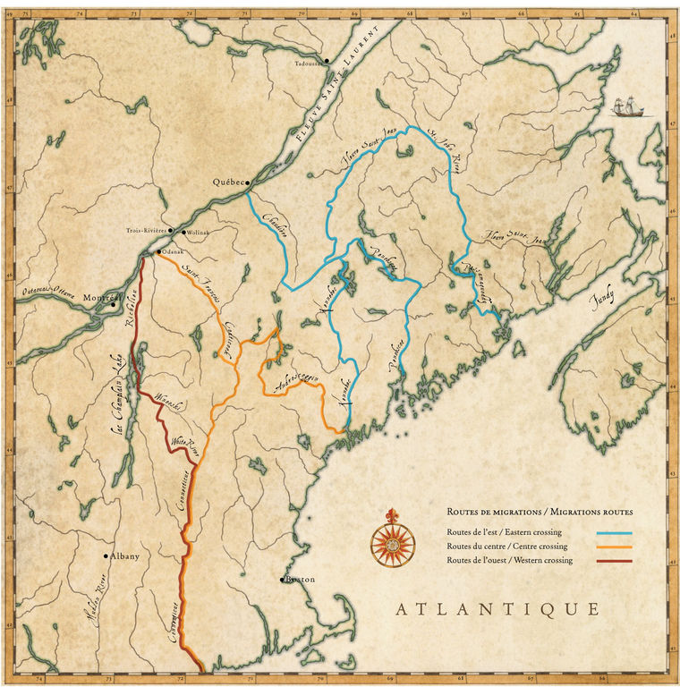 Dès le milieu du 17e siècle, l’accès des Abénakis aux territoires de chasse pour la traite des fourrures provoque des conflits avec les Iroquois et les Anglais. Non seulement les hostilités font plusieurs victimes, mais les Abénakis perdent peu à peu leur territoire. Des groupes de cette Première Nation remontent alors vers le nord et s’installent le long des rivières Chaudière, Bécancour et Saint-François, ainsi que sur les abords des lacs Champlain et Magog.