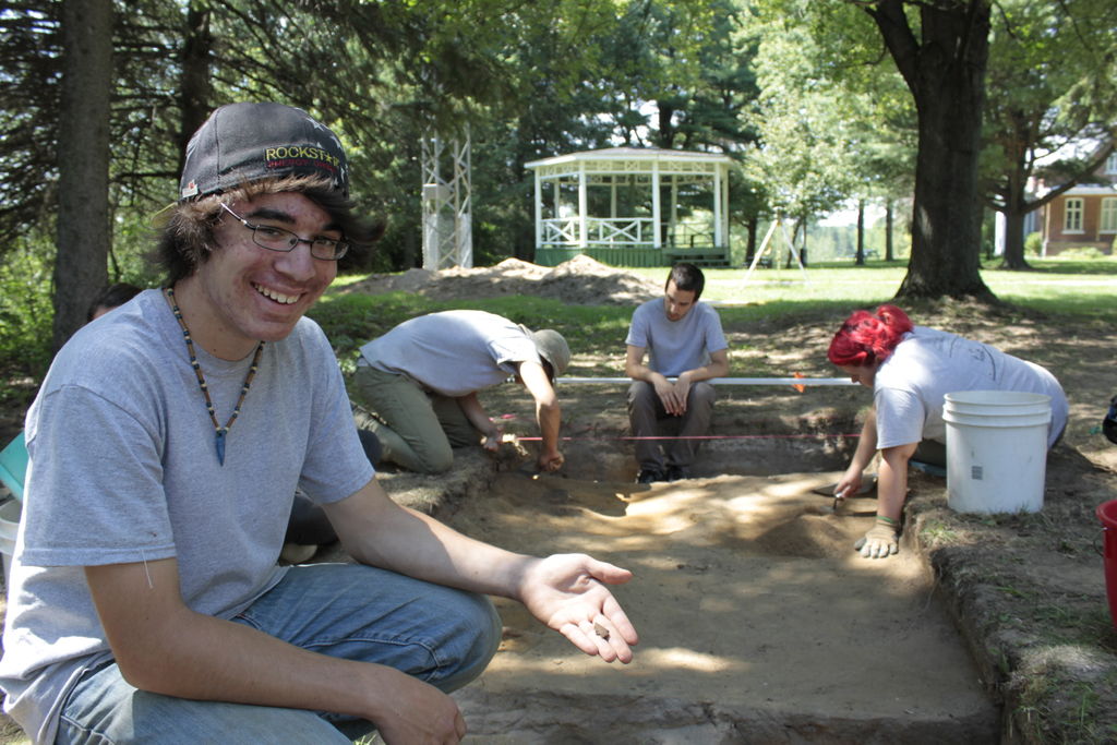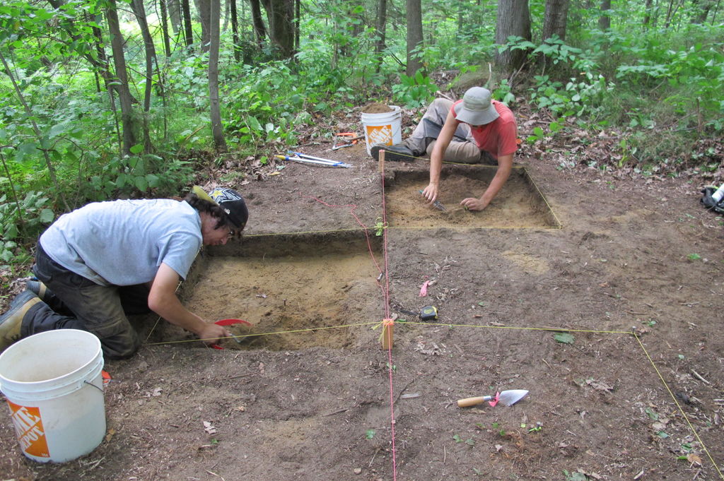 Following these discoveries, three more field seasons were conducted in 2012, 2013 and 2014. Open-area excavations were carried out in several zones, by removing large areas of soil layer by layer. This excavation method had the advantage of providing a general view of the site and its archaeological remains, such as palisade posts and longhouse structures. The archaeologists used trowels for removing the soil layers and then passed the soil through a sieve to collect small artifacts, such as beads with a diameter of 2 mm, and ecofacts, such as raspberry seeds and small bones.