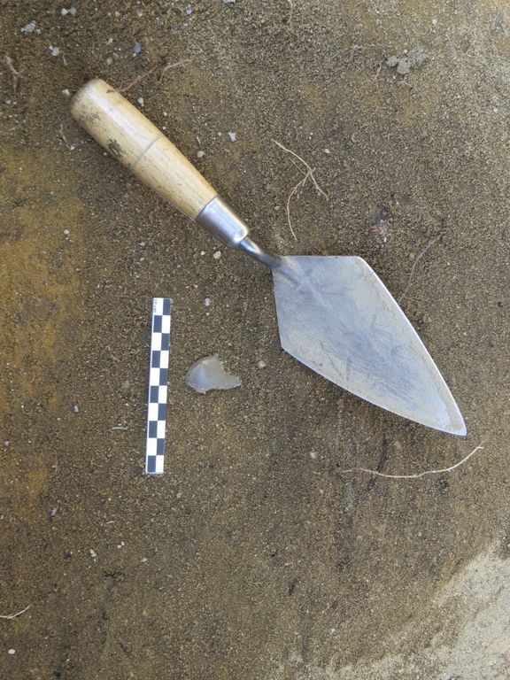 The archaeologists conducted the survey with shovels, trowels and sieves. They systematically dug 50 cm x 50 cm test pits in the area they had decided to survey, to see if they could find artifacts or other traces of former human occupation, such as hearths or structures made of wood or stone.